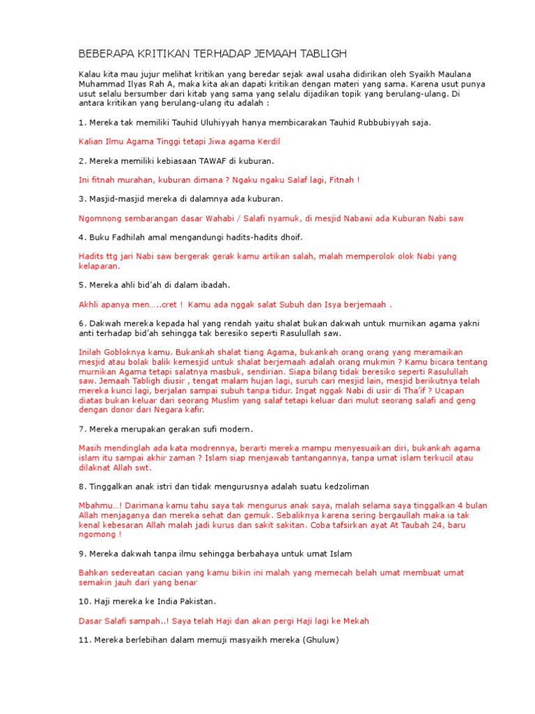 Beberapa Kritikan Terhadap Jemaah Tabligh
