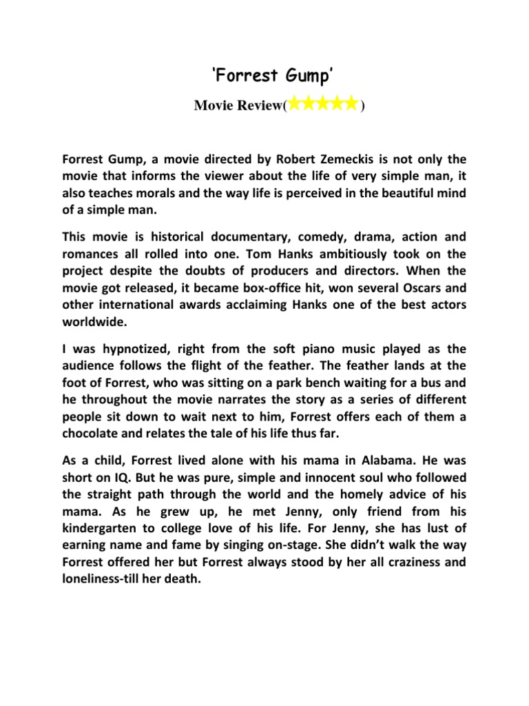 Forest Gump Movie Review Essay Summary