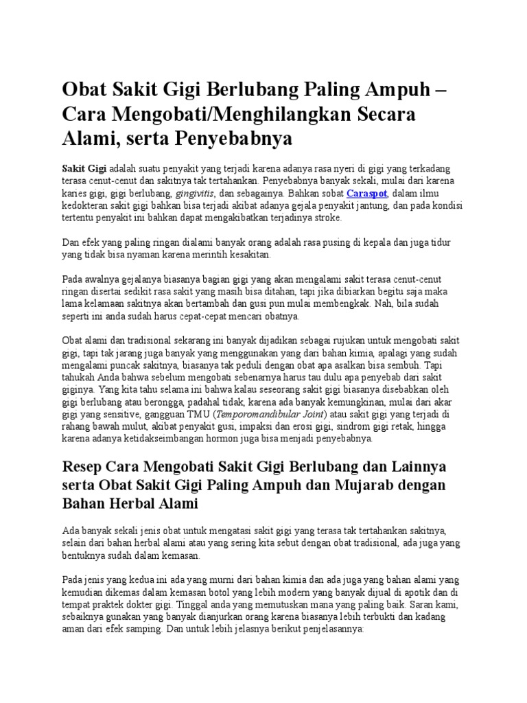 Obat Sakit Gigi Berlubang Obat Sakit Gigi Tradisional Obat